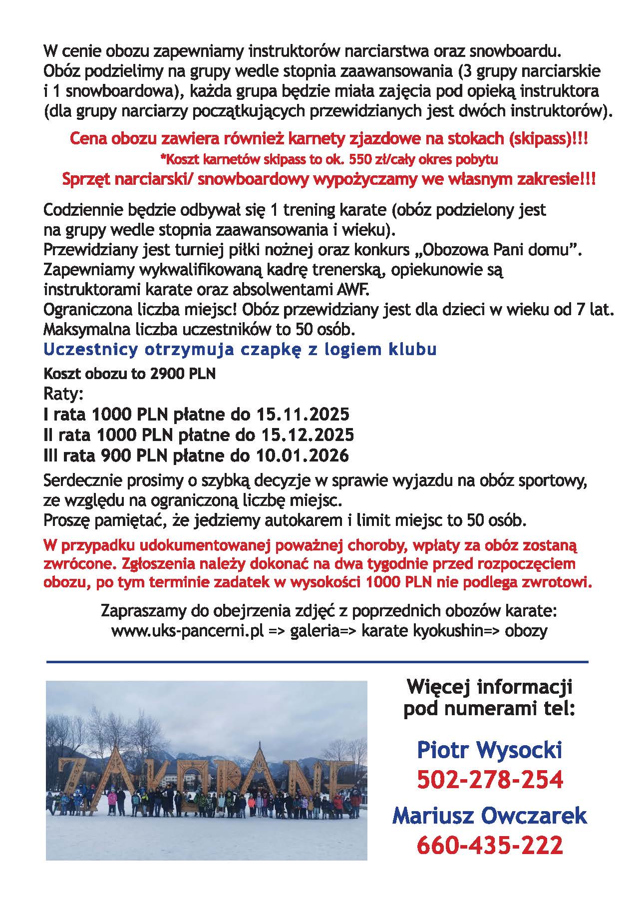 Ostateczną decyzję na temat wyjazdu należny podjąć do dnia 15.11.2025.